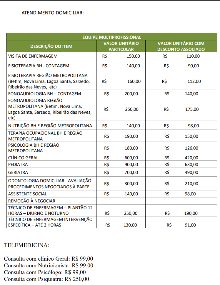 Tabela Évora Home Care